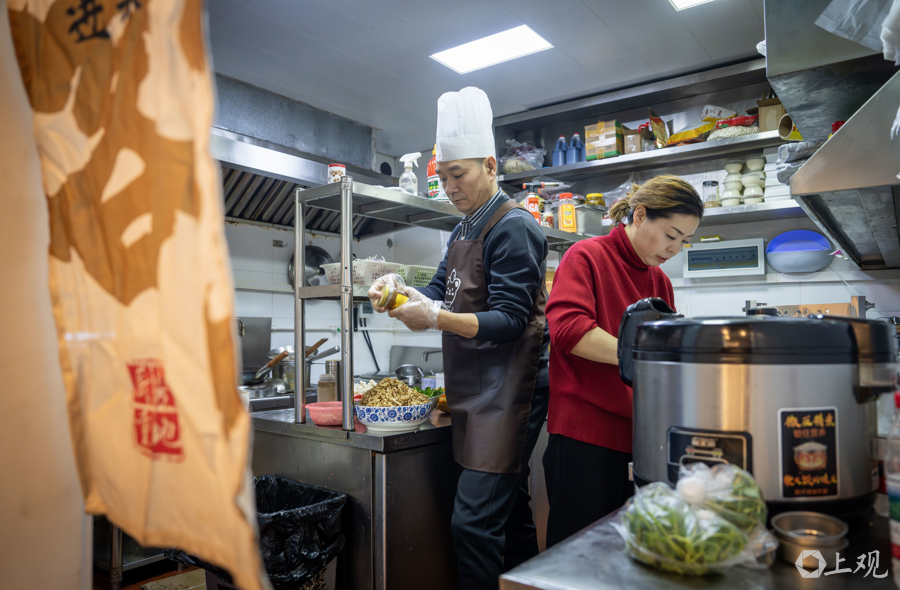 2026年2月11日,腊月二十四,浦东东明路街道“客家小厨”餐饮店内传来阵阵爽朗笑声。