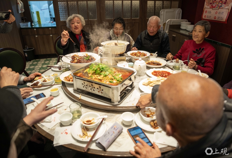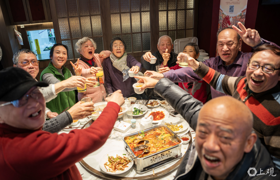 “活了74岁了,这么热闹的饭局还是第一次见。我得连翘起两个大拇指。”倪咏梅和平均年龄70多岁的老朋友们欢聚一堂,共迎新春。