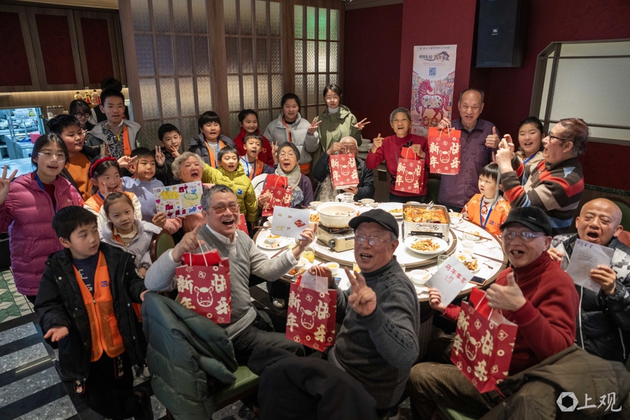 “桌子上的菜其实是老人们自己点的“心愿菜单”,我们收集了这些心愿,给大家准备这桌‘马年家宴’,许多菜都是我们街区商铺的拿手菜,也是家门口就能吃到的家常菜。”东明汇明心街区发展服务中心刘璟和同事们一早就忙开了,对接场地、接送老人,个个都健步如飞。“看到老人们脸上的笑容,能感受到他们是真的开心。”