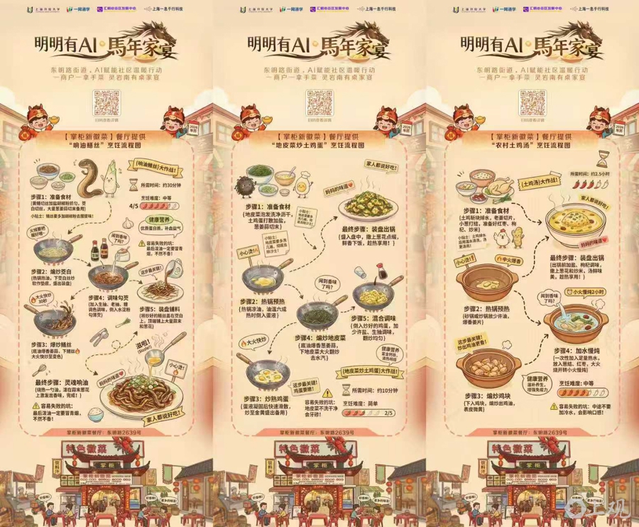 汇明心街区发展服务中心联合街区企业、居民一起用AI制作的“AI家宴菜谱”。