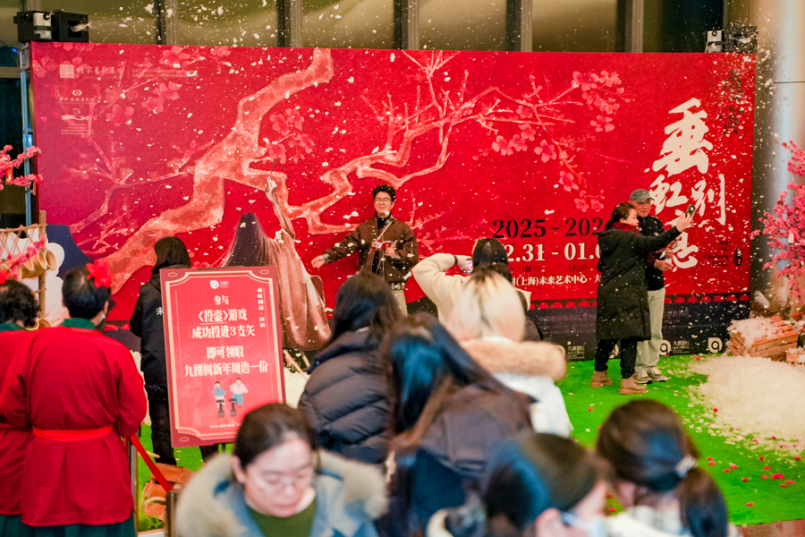 跨年夜,中国歌剧舞剧院《垂虹别意·唐寅》在九棵树未来艺术中心上演,观众们与“江南第一才子”唐寅,一起度过了不一样的夜晚。九棵树未来艺术中心和苏州湾大剧院共同策划“演艺+文旅”新形式,通过非遗展示、直播连线、票根联动等活动,把江南的诗意和法式的浪漫“搬”到同一片夜空下,让两地观众大呼过瘾。