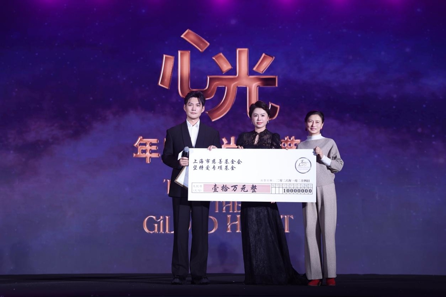 在“心光公益”环节中,严屹宽和上海市慈善基金会坚持爱专项基金副主任殷小凡女士代表坚持爱专项基金,现场向上海市曹鹏公益基金会定向捐赠人民币10万元,善款将专项用于支持自闭症儿童的成长与发展项目。