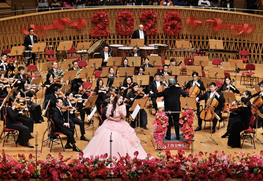 12月31日晚,捷豹上海交响音乐厅内乐声悠扬、暖意融融,2026上海新年音乐会如期上演。这是上海交响乐团为城市献上的第17张“音乐贺卡”,由音乐总监余隆执棒,携手女高音歌唱家戴梓伊、新生代钢琴家王雅伦、“天才少女”小提琴家蔡珂宜、新锐大提琴家李拉以及中提琴新秀林怡秀五位古典乐坛新秀,以经典旋律奏响辞旧迎新的乐章,让古典音乐与城市未来共振。音乐会以肖斯塔科维奇《牛虻组曲》四首选段压大轴,以此呼应乐团今年启动的肖式交响曲全集录音计划。
